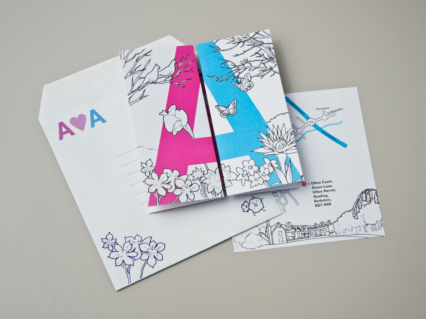 Wedding Invite, Map and Envelope design for Arabella and Adrian's big day.