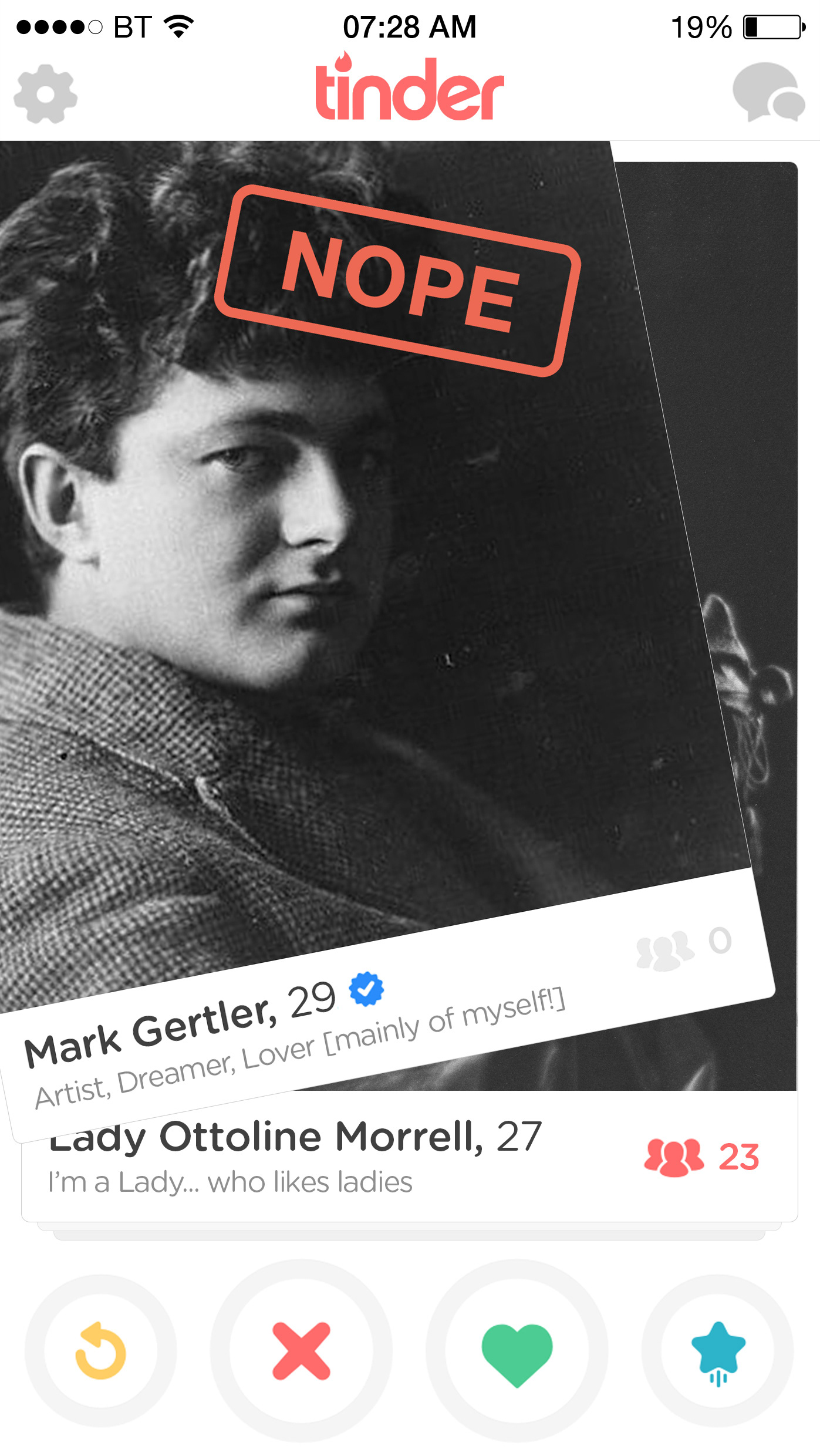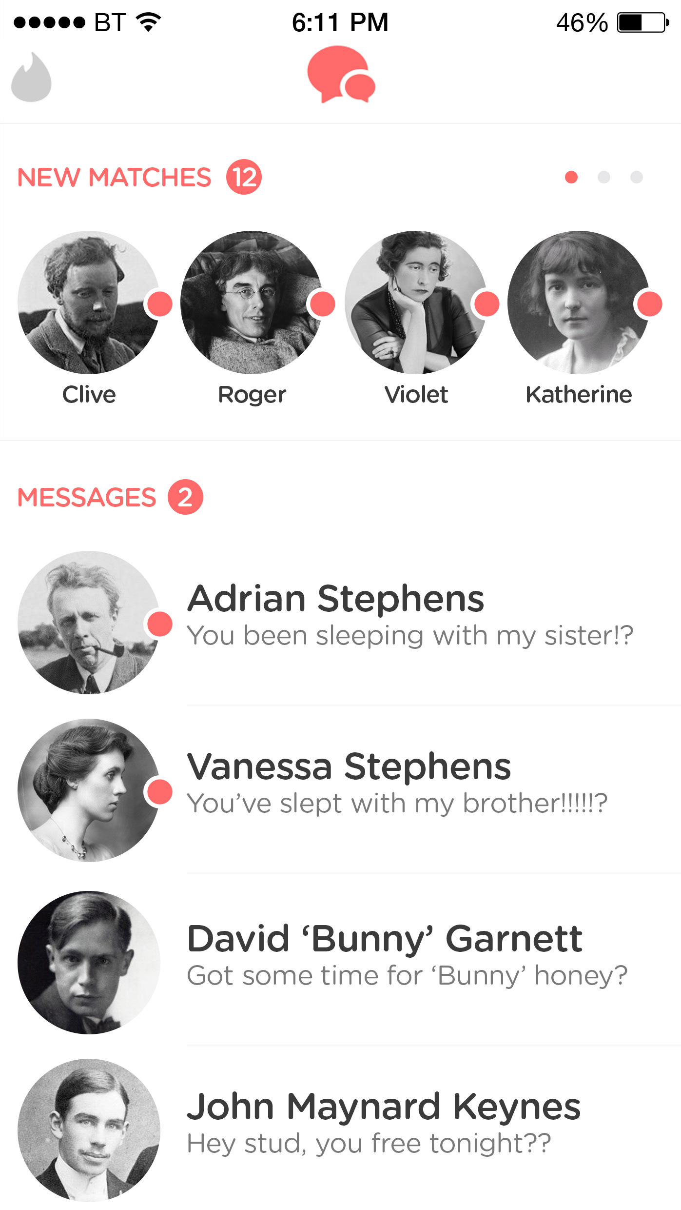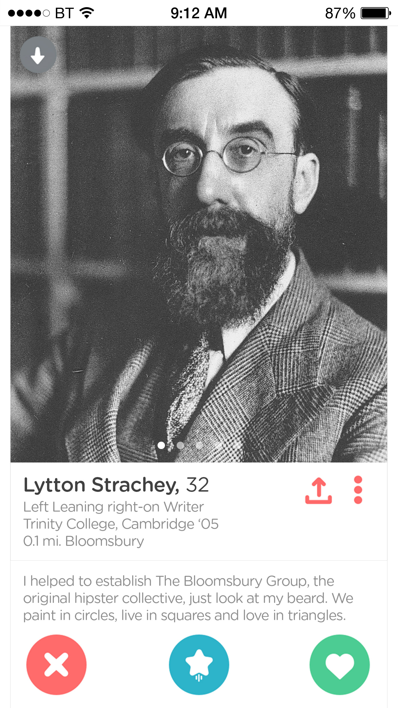 AGENCY: Acrylicize CLIENT: The Office Group ROLE: Design and Copyrighting BRIEF: Create a series of prints that demonstrate the complicated relationships of the Bloomsbury Group, using the modern dating language of Tinder.
