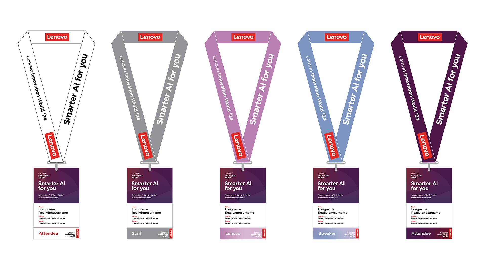 Agency: Prism Client: Lenovo Role: Design Brief: I worked alongside the Creative Director in the design development of the Lenovo Innovation World Exhibition space in Berlin. This was a series of large scale graphics that tied together throughout this huge space, starting from the outside and feeding all the way through to the stage at the end, via various waypoints. Whilst keeping this consistent, I also looked at the smaller scale items such as lanyards and t-shirts, so that there was cohesive branding throughout.