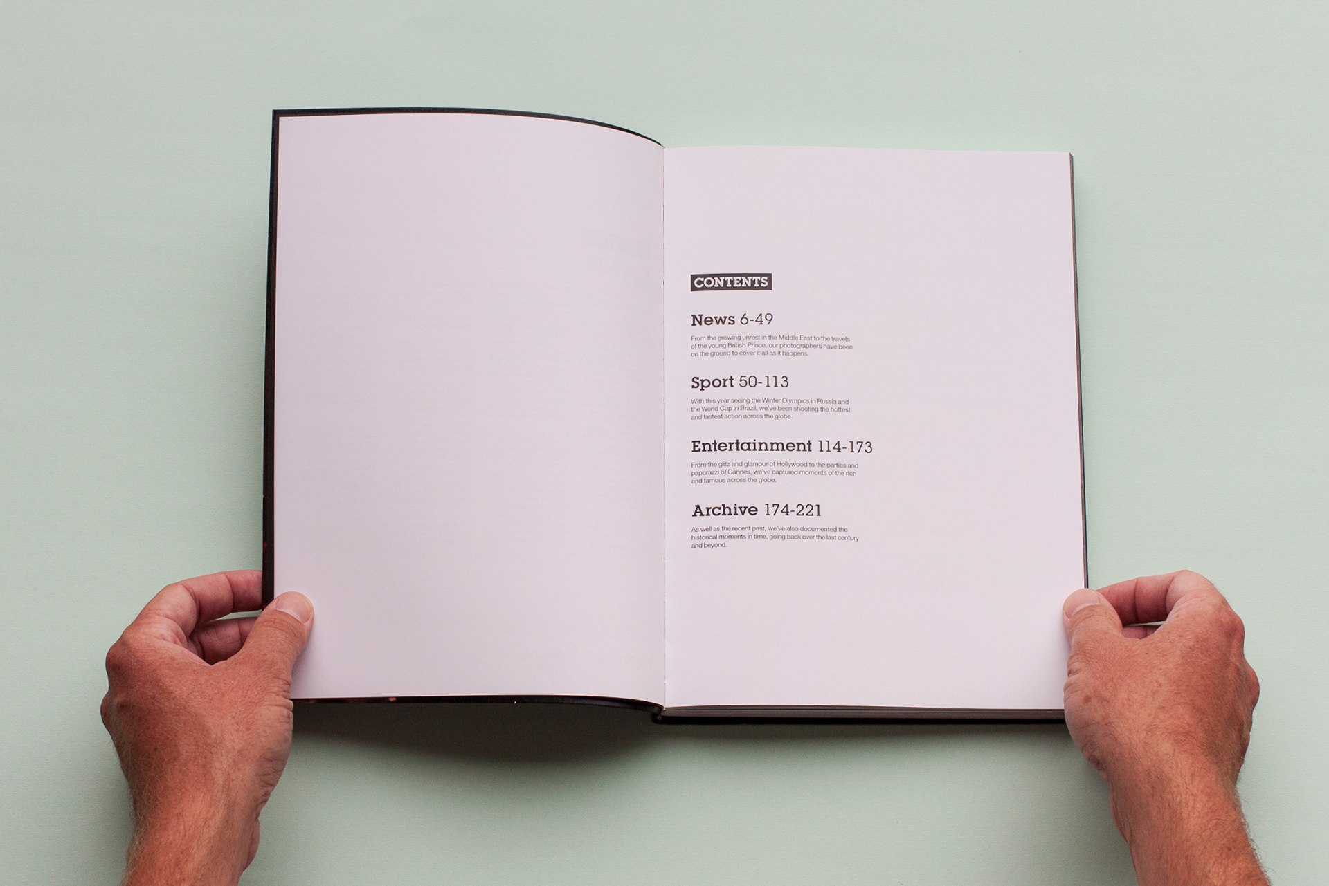 Having established the design for the new Creative in Focus book, I was asked to redesign the layout template for the long running Year in Focus book, which is a review of Getty Images best editorial photography over the past year. This then brought it more in line with the corporate look and feel, and meant it aligned with the other book designs.