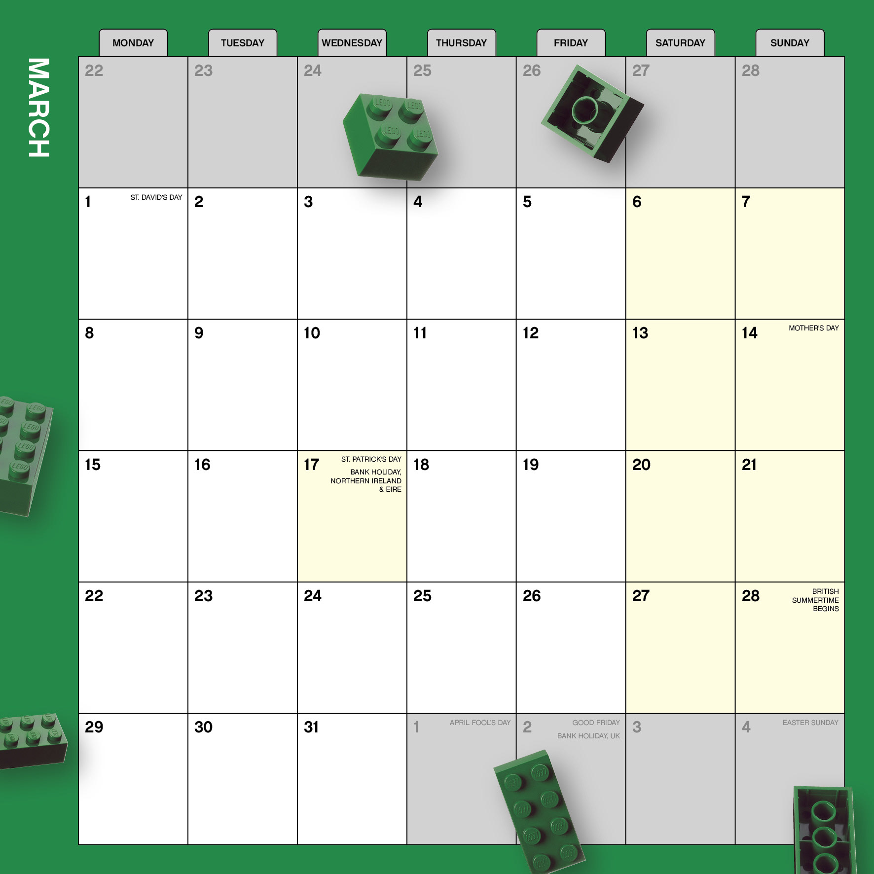 Agency: In House Client: LEGO Role: Design and Photography Brief: I was asked to develop the first ever official LEGO Calendar to raise money for the National Autistic Society charity. Despite the wide use of 3D Studio Max for rendering scenes, I pushed to take a photographic route as I felt it would be more inspiring for children. I did some test shoots to demonstrate this, and then shot the whole calendar myself.
