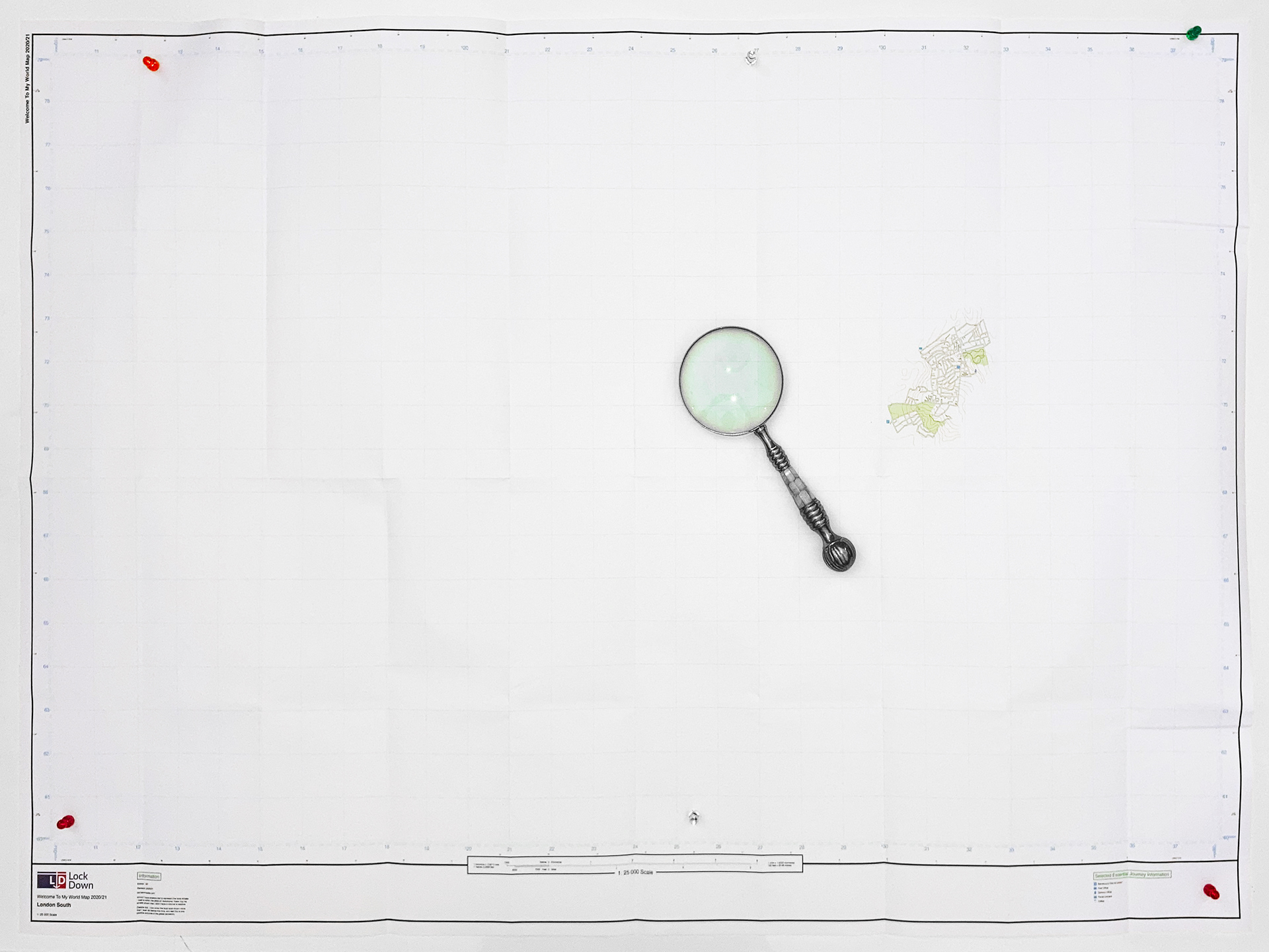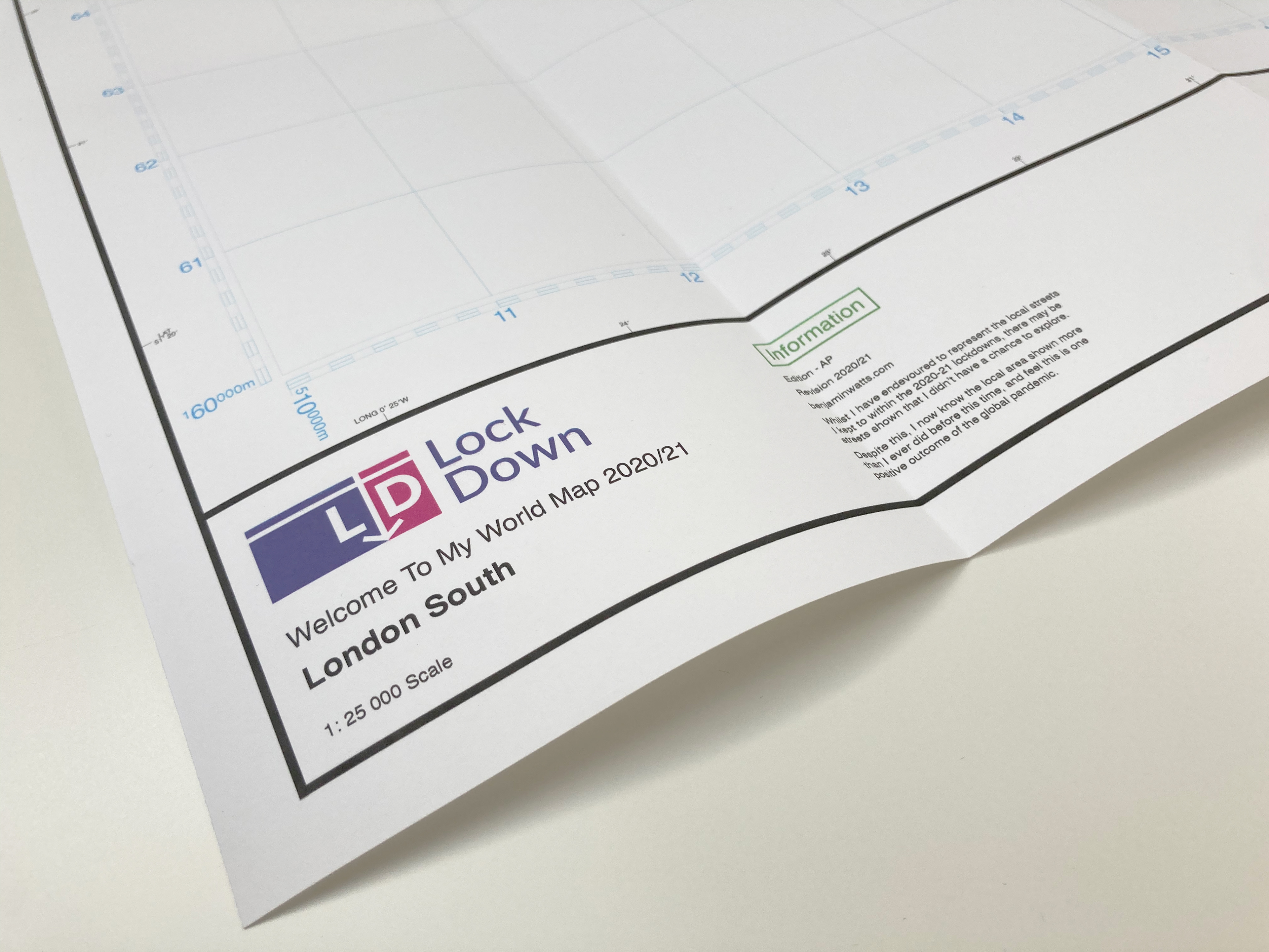Agency: Benjamin Watts Design Client: Grayson Perry's Art Club Role: Design and Art Direction Brief: During lockdown Grayson Perry hosted an Art Show on TV encouraging viewers to submit artworks based on the theme of Travel. Whilst Maps are often used to navigate when travelling, given we were in lockdown I was very aware of how limited a distance we could travel. So I created a full scale A0 Ordnance Survey Map of South London but only showing the area I had been allowed to travel within during lockdown. The emptiness of the Map and the small area highlight just how restrictive an unusual this time in our lives was.