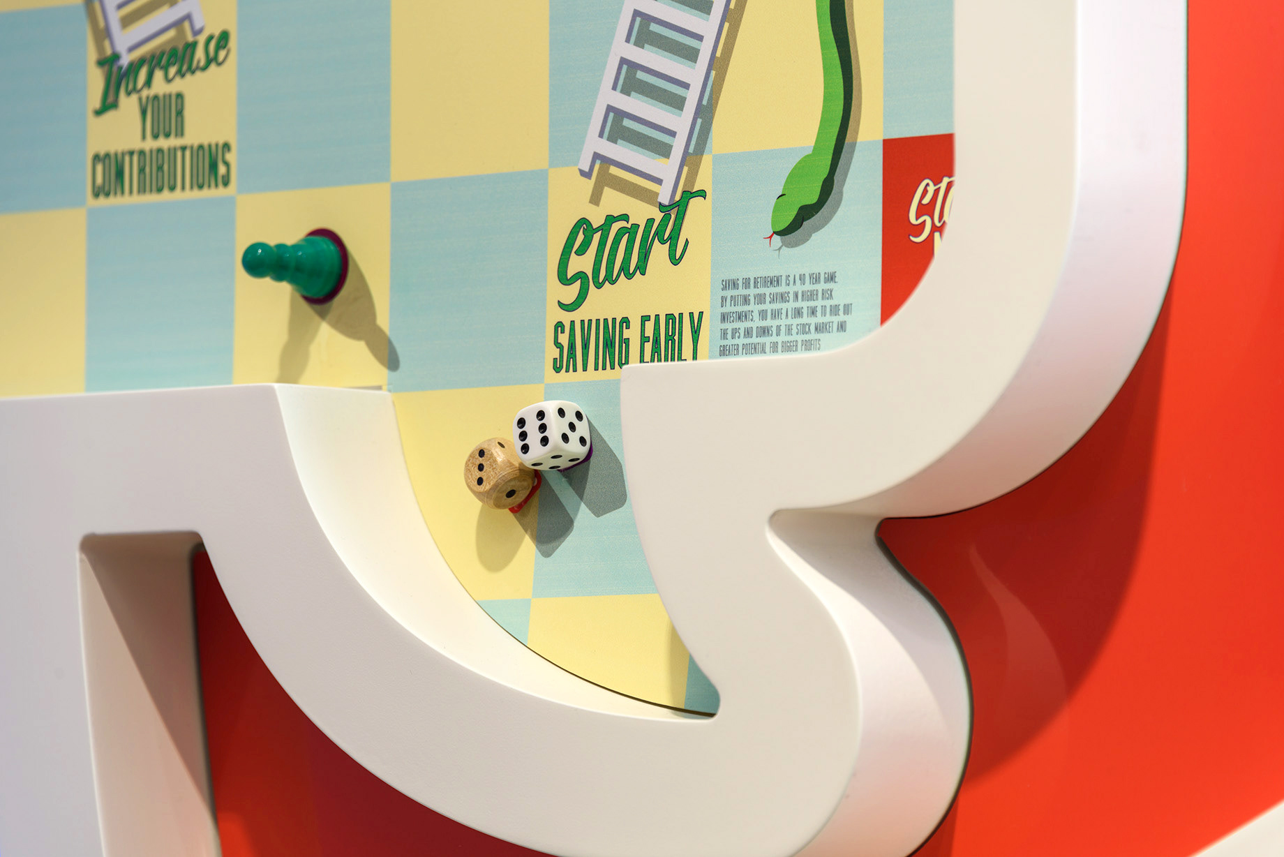 Agency: Acrylicize Client: Which? Magazine Role: Design Brief: Create a Snake and Ladders board based around Which?'s recommendations for buying Pensions. This was part of an installation in the Reception HQ.