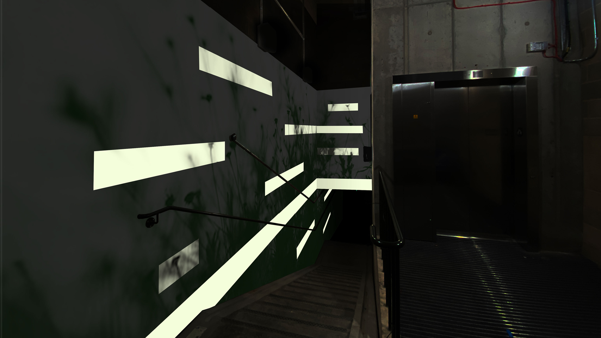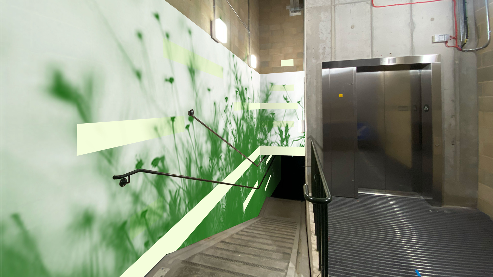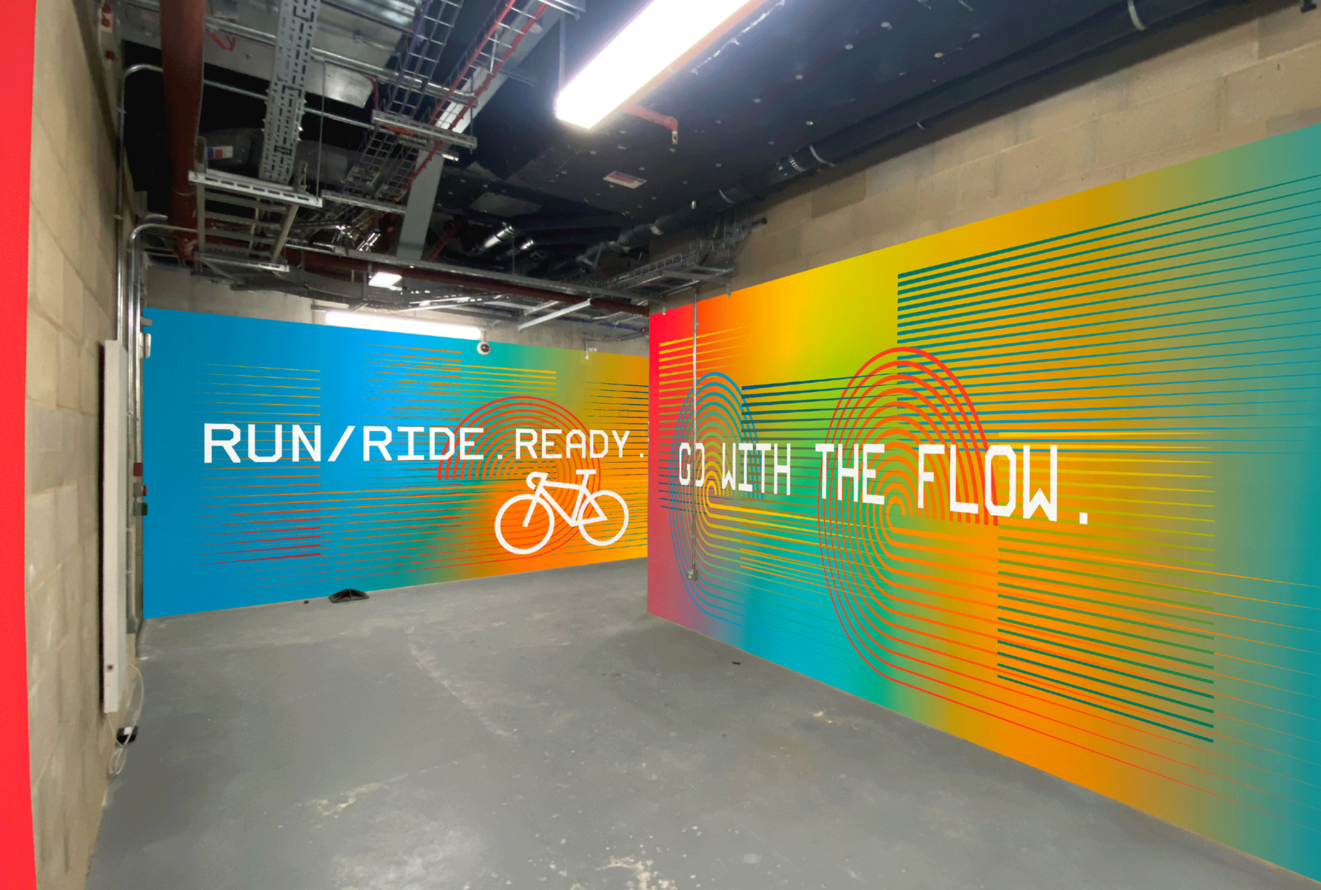 Agency: Acrylicize Client: W.Re St Pancras Campus Role: Design Brief: I was asked to develop 2 different design routes for a large scale mural to be painted in the bike store area of this new development. I presented routes on the themes of Transference and Terrarium, with the former concept being developed through to final artwork. These were then to be hand painted on-site. It was fun to explore the use of glow-in-the-dark paints as this would be a dark basement (when the lights are off!)